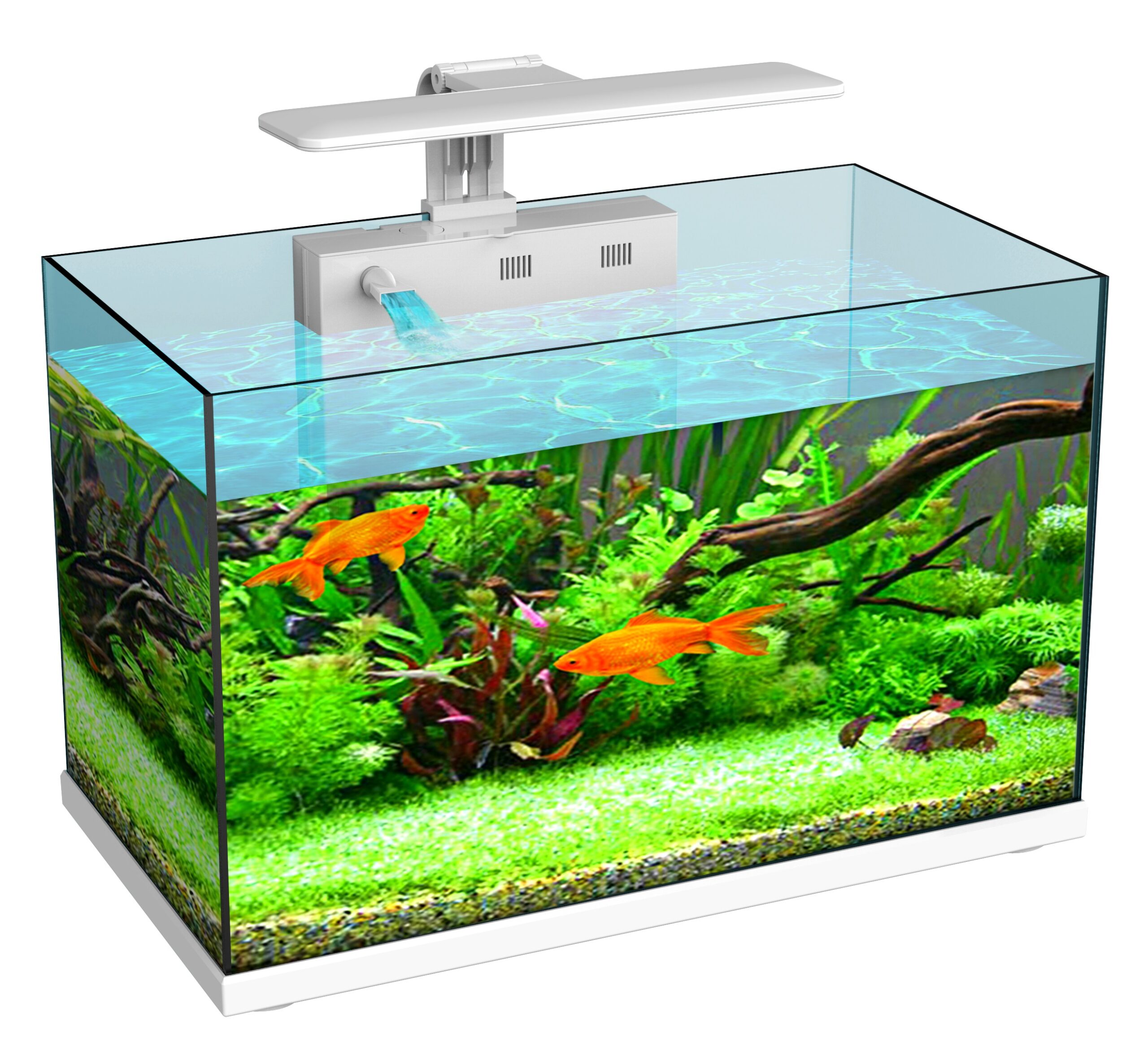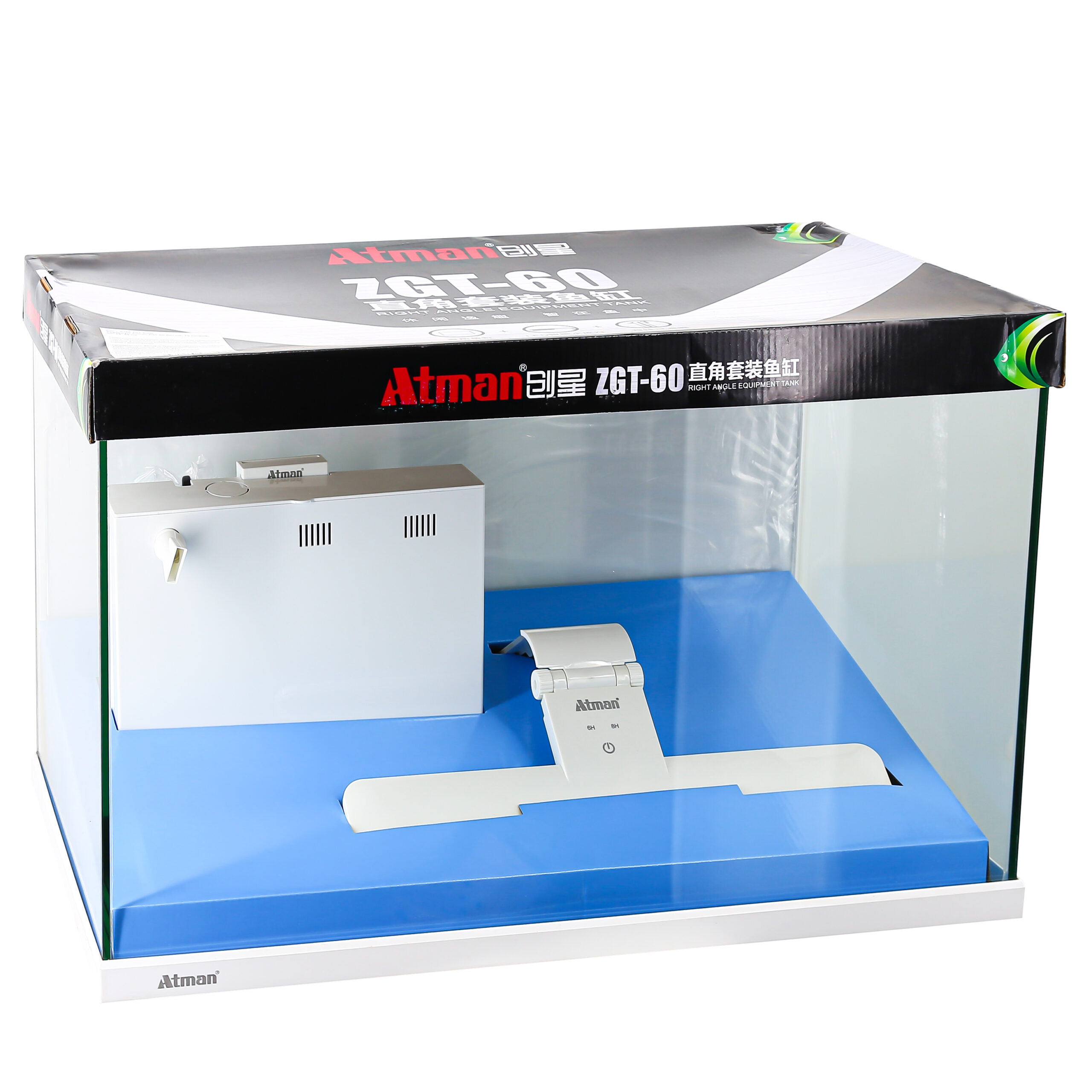 В комплекте аквариума вы найдете: покровное стекло с держателями, удобный внутренний фильтр Atman SP-800 (450л/ч), который крепится на заднюю стенку аквариума и светодиодный светильник QL-60 (15W).