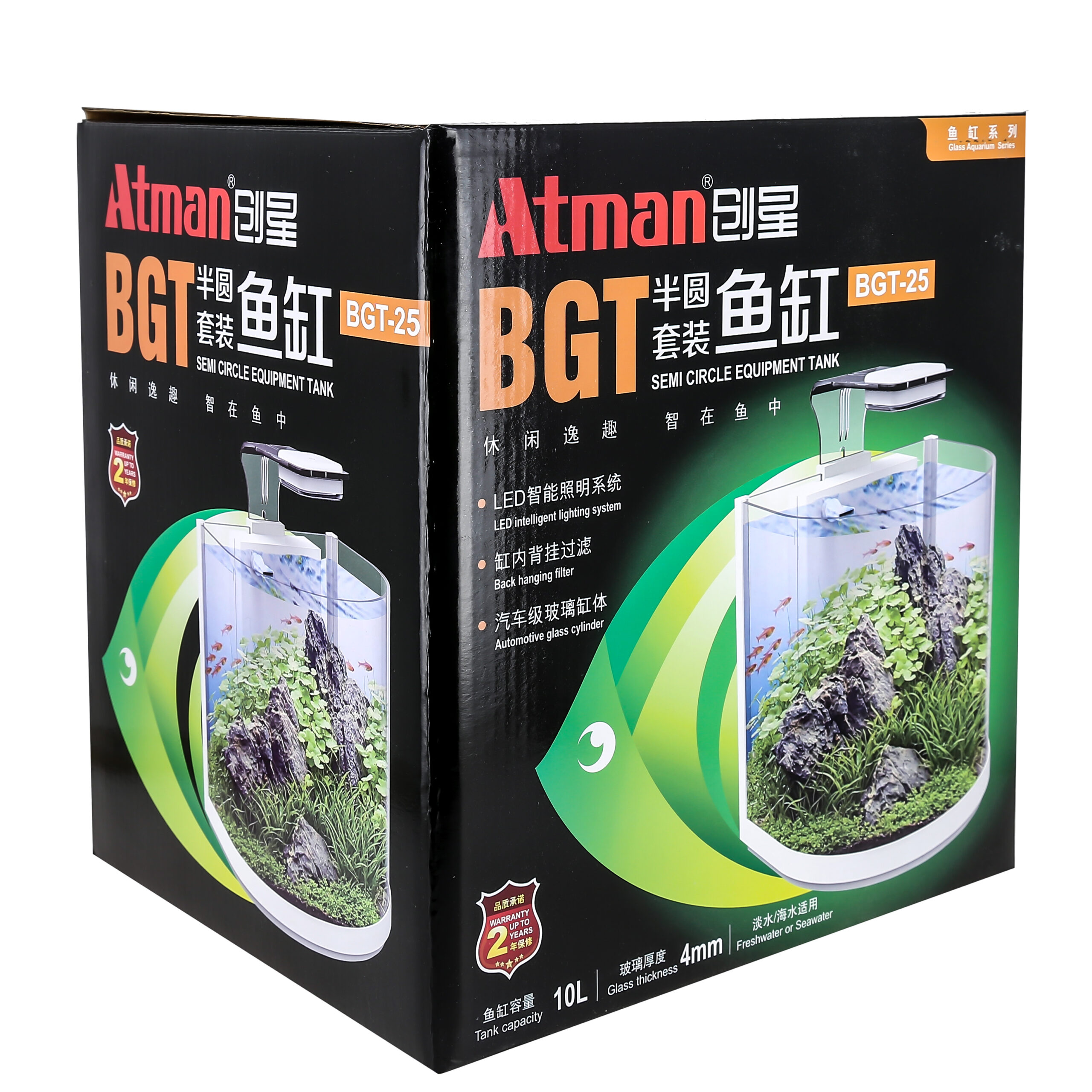 В комплекте аквариума вы найдете: прозрачную крышку из пластмассы, удобный внутренний фильтр Atman SP-200 (200л/ч), который крепится на заднюю стенку аквариума и светодиодный светильник CX-SP (5,6W).