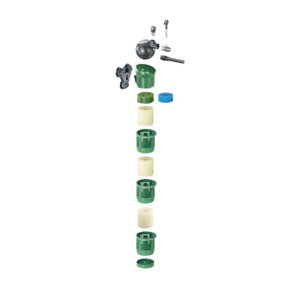 Внутренний фильтр Eheim Aquaball 180 предназначен для аквариумов, объем которых не превышает 180 литров. В комплекте идет диффузор с регулировкой для аэрации воды и губка.