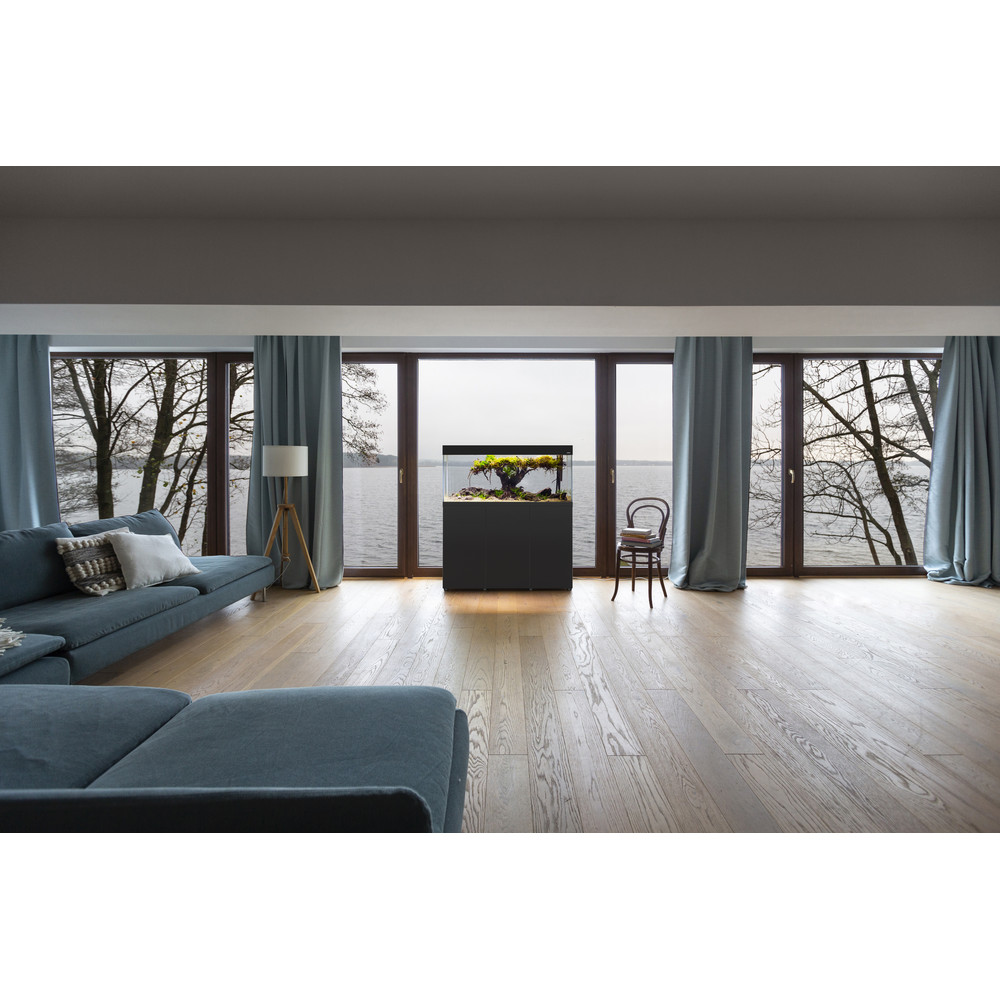 Надежная и стильная подставка идеально сочетается с аквариумом. Фасад и боковые стенки у аквариума и тумбы выровнены в единую плоскость.